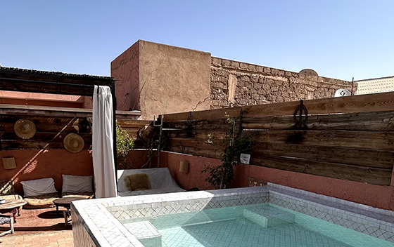 Profitez de notre rooftop en plein cœur de la médina, un espace pensé pour la détente et le calme après une journée passée dans les souks. Bain rafraîchissant, coin lounge ombragé et vue dégagée sur les toits marrakchis : tout est réuni pour vous offrir un moment paisible et authentique. C’est l’endroit idéal pour lire, prendre un thé ou simplement apprécier le soleil de Marrakech en toute tranquillité.